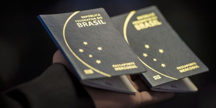 Novo passaporte comum eletrônico brasileiro. O documento passou a ser emitido desde a última segunda -feira (6) pela Polícia Federal e Casa da Moeda, e terá prazo de validade de 10 anos (Marcelo Camargo/Agência Brasil)