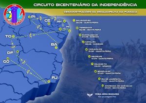 De acordo com o Comandante da Esquadrilha da Fumaça, Tenente-Coronel Aviador Daniel Garcia Pereira, o Circuito Bicentenário da Independência terá demonstrações em várias cidades. “Realizar essas apresentações nos céus do Brasil para milhares de pessoas é sinônimo de independência, democracia e de uma Força Aérea pujante e moderna. Os rastros de fumaça que serão visualizados nos céus representarão todos os militares da FAB o compromisso que a nossa Força Aérea tem com o povo brasileiro”, destacou.