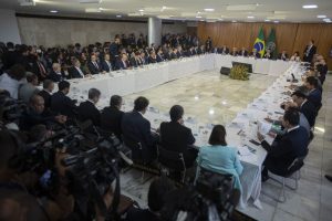Presidente Lula participa de uma reunião com chefes dos Três Poderes, governadores e ministros, para debater formas de reforçar a segurança no ambiente escolar. Foto: Joédson Alves/ Agência Brasil – Joédson Alves/ Agência Brasil